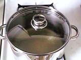 高温設定で尚且つアルコールを使うため、中の様子が伺えるガラスのフタつきの大鍋をご用意下さい。